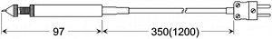 GRF 200, Tire temperature probe, type K For measuring the temperature of tires or other soft media -50 ... +200 °C t90 = approx. 5 sec. NiCr-Ni, class 1 Technical details: Fast response insertion probe with depth control stop (0...14mm), aluminium handle, spiral cable 0,35m (ca. 1.2m drown out), DIN-plug