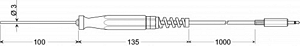 GTF 175, Immersion probe For gases and liquids Measuring range: -70...+200 °C Response time: t90 = ca. 10 sec. (liquids), ca. 40 sec. (air) Technical data: non-corrosive and acid-resistant V4A tube, plastic handle with anti-kink connection, silicone cable, 3.5mm gold plated jack connector Suitable for: GMH 175, GFTH 200, GIM 1840 - ST60, GIM 1840 - ST80